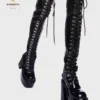 Drama from toe to thigh—these lace-up boots demand attention and deliver allure.